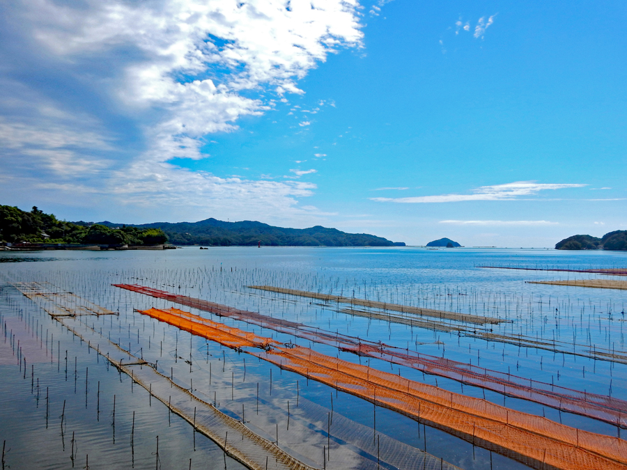 「海と空が織りなす群青の世界」色鮮やかなノリ養殖網が張り込められた南伊勢町を訪ねて @志摩市浜島町は迫子