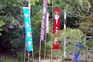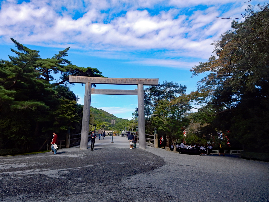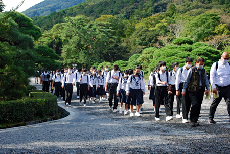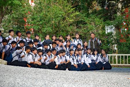 晴天に恵まれて爽やかな秋空のもと修学旅行生でにぎあっていた。