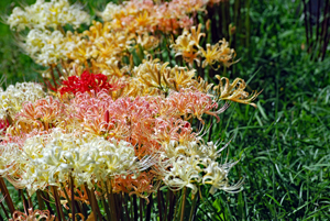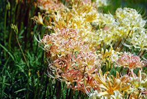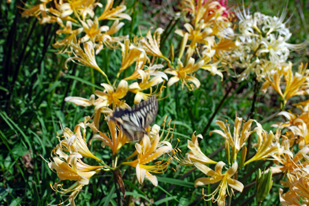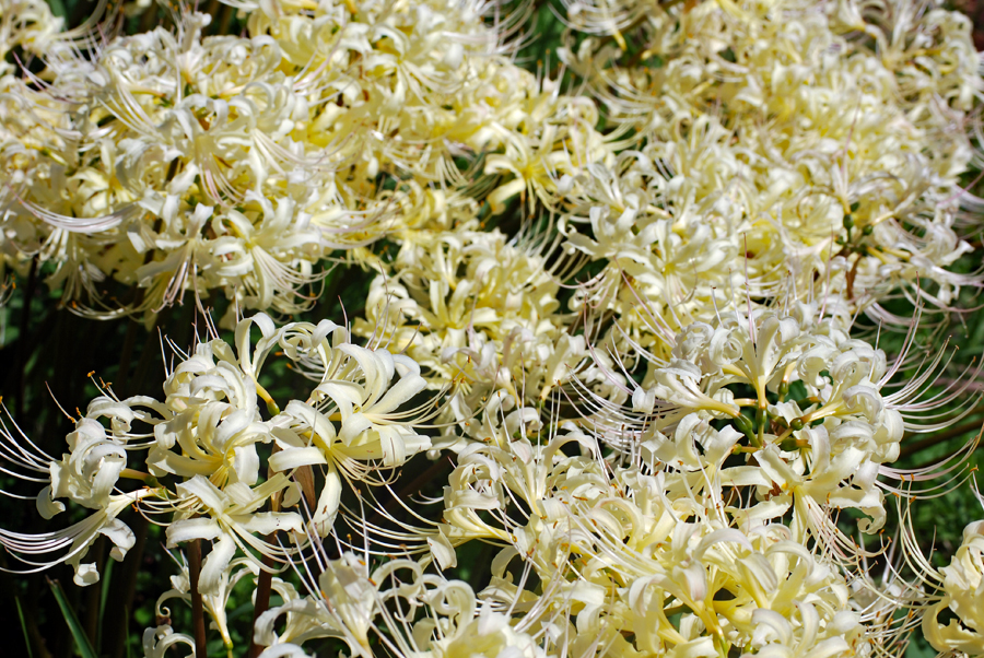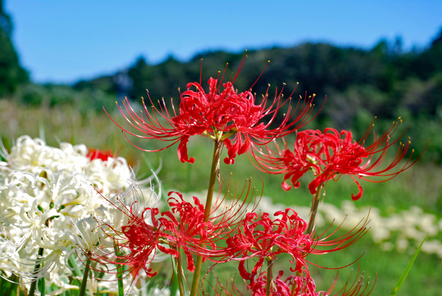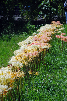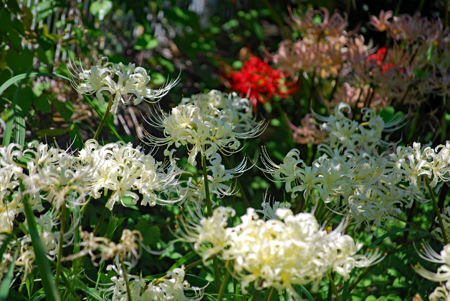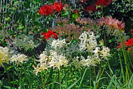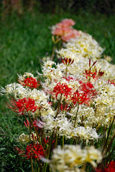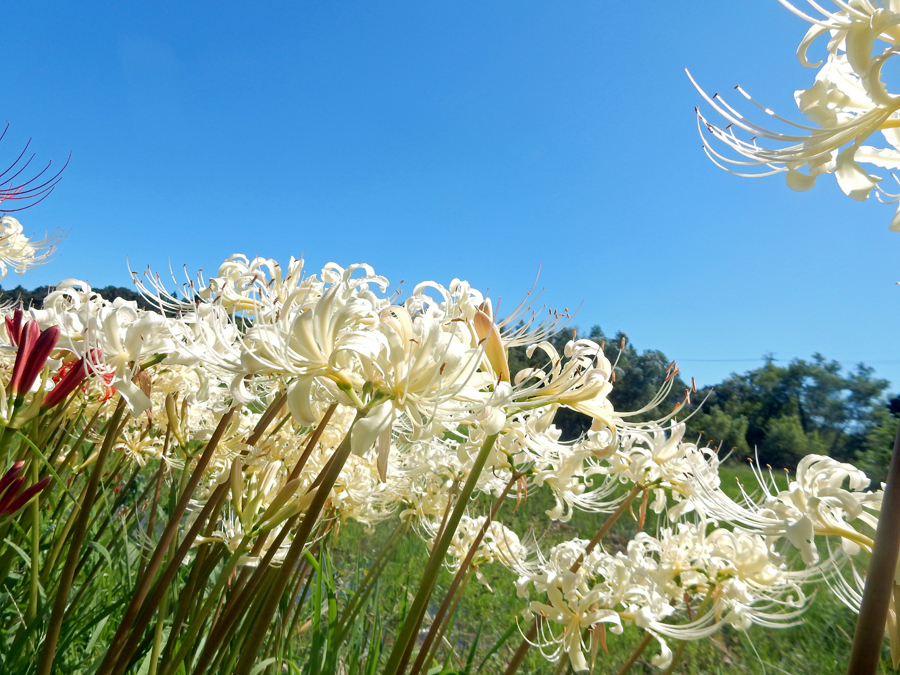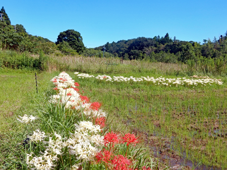 田んぼのあぜ道に白・ピンクの彼岸花が見ごろ 志摩市阿児町鵜方 令和2年9月27日 玉城町の帰り鵜方まで足を延ばし田んぼのあぜ道に咲く彼岸花を探しに行った。ここは白・ピンクがほとんどでこれはまた 赤とは違った雰囲気で豪華、、、時々蝶なども舞ってゆったりした気分で時の過ぎるのもゆったりしていてとても贅沢な時 間を過ごした。