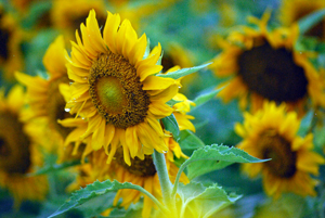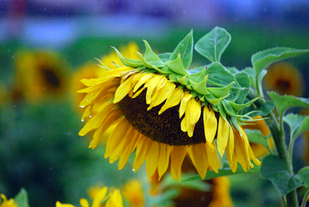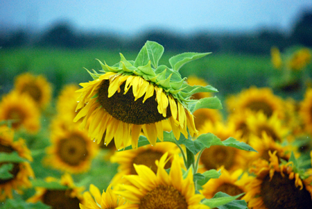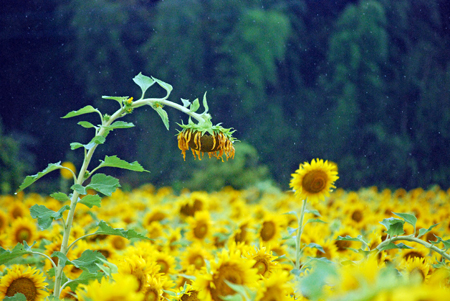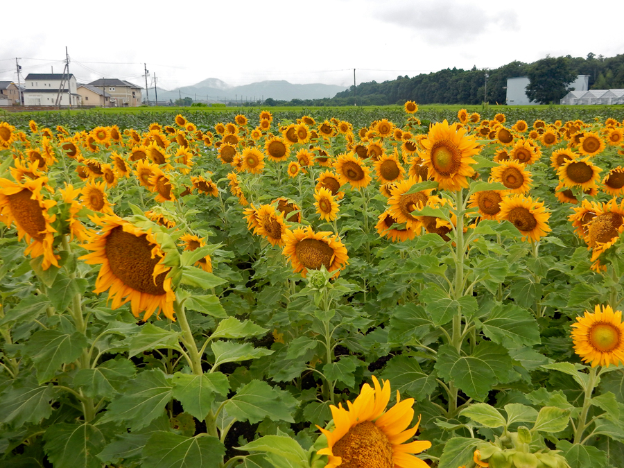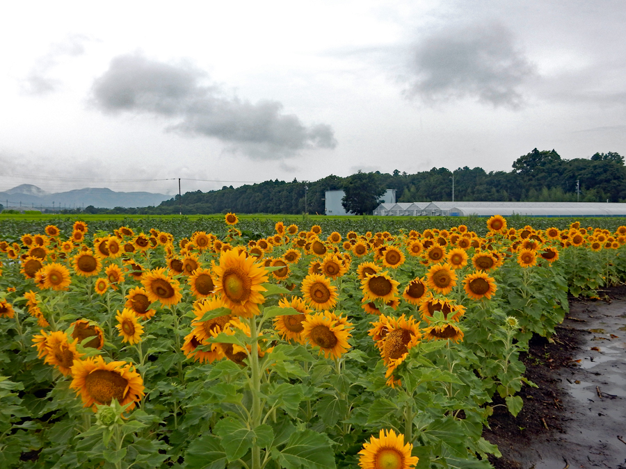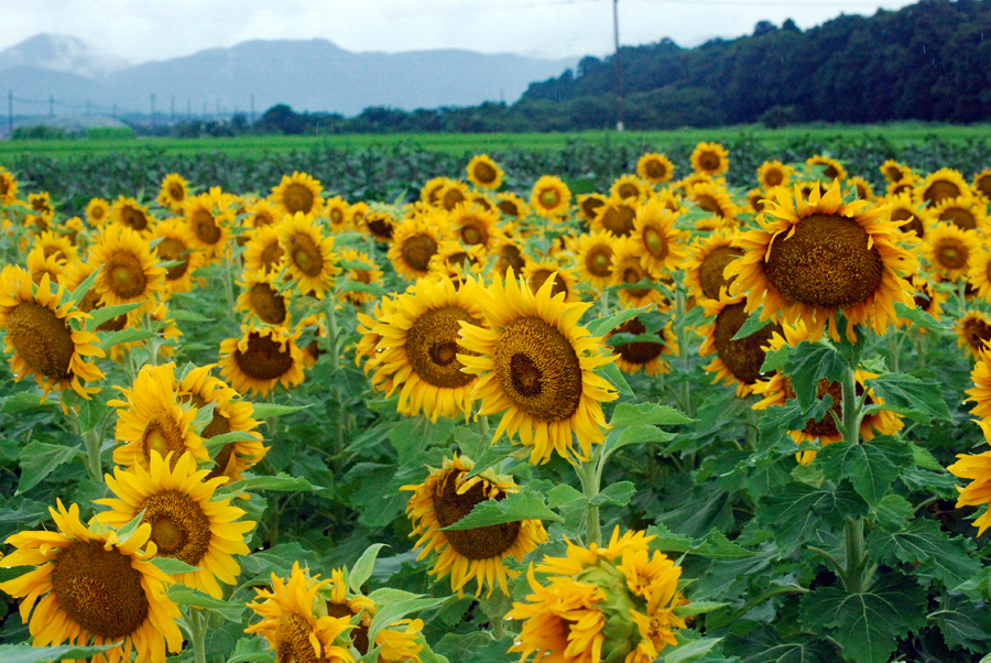 中学1年の時担任だった先生は真っ白なスポーツウエアの良く似合う新米教師だった。過去は霧の中に消えやすいけれど霧雨が過去をよみがえらせることがままある。この風景が長い歳月の流れをあらためて思い出させた。ちなみにひまわりの花言葉は「あなたは素晴らしい。崇拝」だそうです。昨日知人宅を訪問の途中寄ってみました