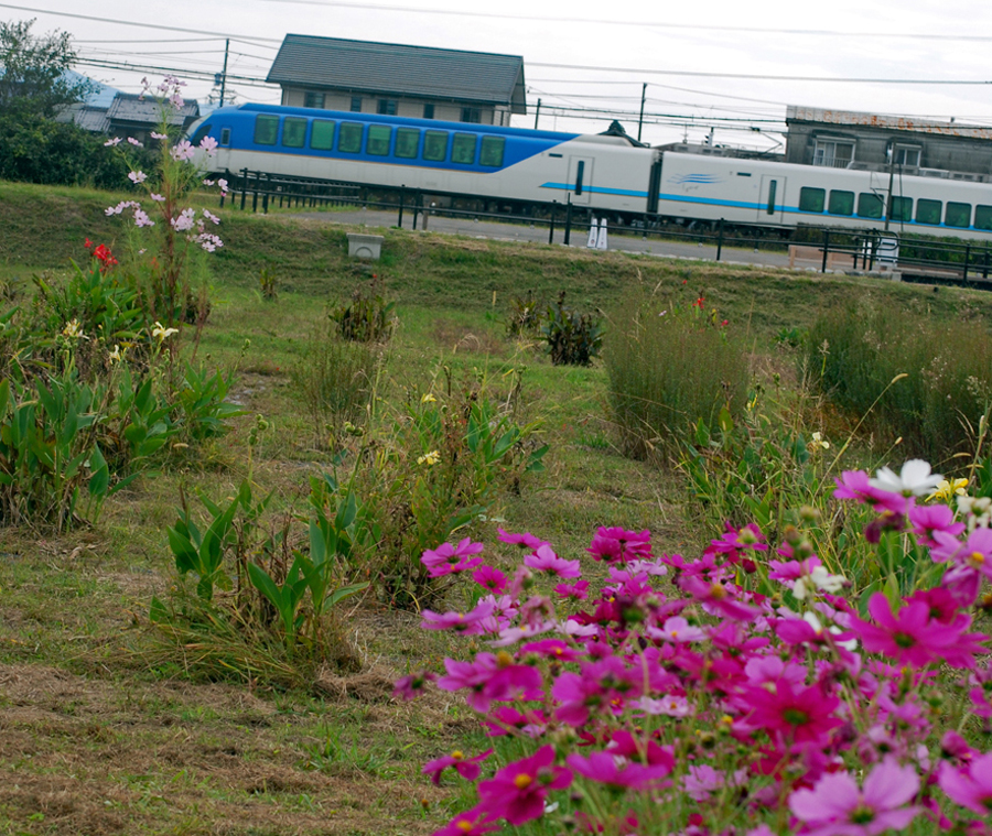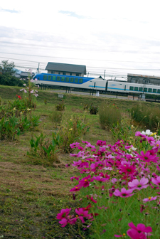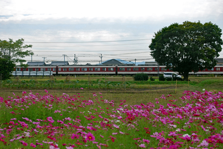 令和2年10月28日撮影 明和のコスモスが満開だとの写真仲間のニュースが入った。この地ならではのコスモスを写すとすれば電車の通るのを 待つしかないと思ったがうまくは、いかないものもっと腕を磨くことだ、反省しきりである。