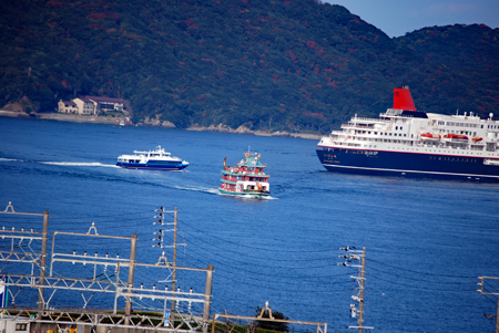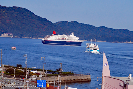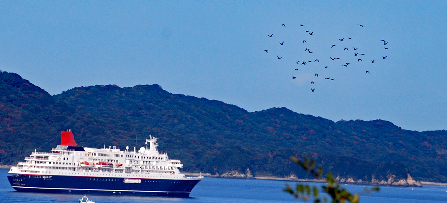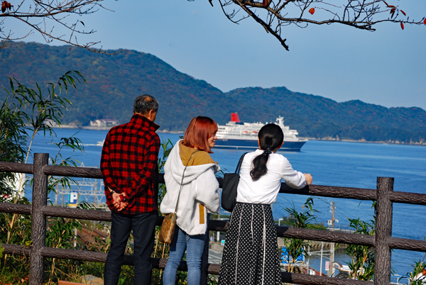 写真サークルの友人を誘って久々のにっぽん丸の撮影に出かけた。先ずは城山公園に上り高台から鳥羽港を眺めた。久し振りの赤煙突の船、小春日和がぴったりの今日の鳥羽港はクルーズ船を迎えたせいか一段と活気に満ちているように見えた。もう4