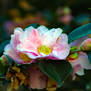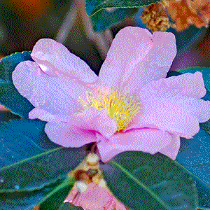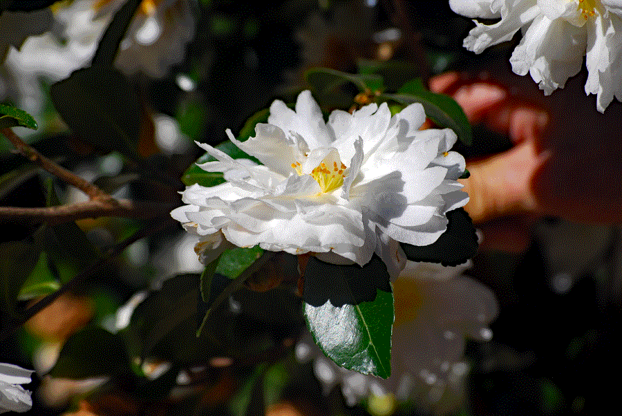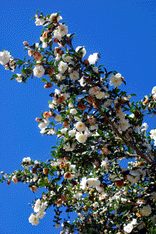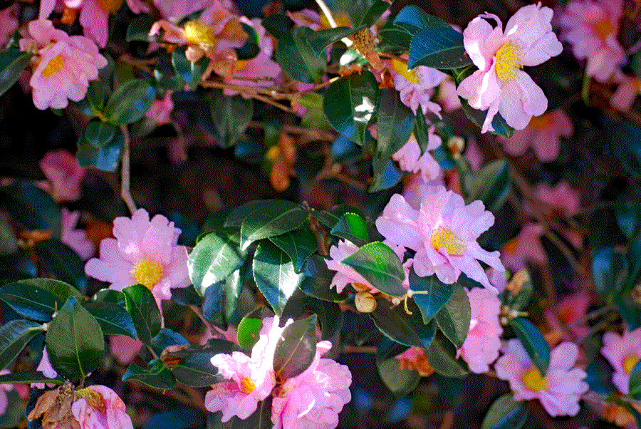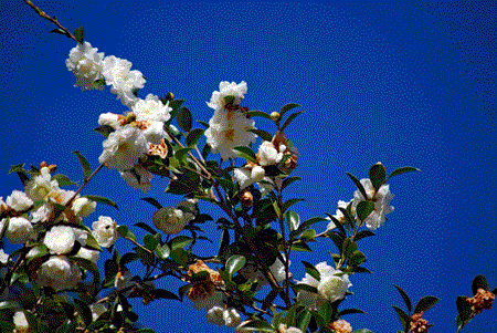 「コロナに負けるな 咲き誇れ さざんか」飯南町、という看板に迎えられた。次々と車が入ってくる。茶畑の中にはんなりと大きな花が房房とまさにたわむほどに咲き満ちていた。1年に1度の花との出会いが日々心のどこかでコロナの恐怖におびえている時間から解放された思いだった。帰り「道の駅茶倉駅」の展望台から眼下に見下ろす風景に昔ながらの原風景を懐かしんだ。