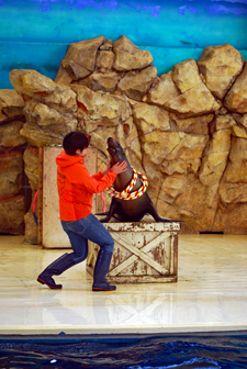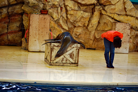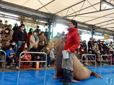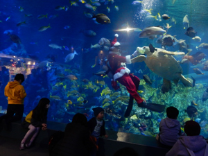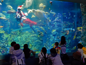 | 鳥羽水族館恒例の鳥羽市民感謝ウイークが始まった。毎年同行してくださる友人を誘って出かけた。エントランスホールの巨大水槽でサンタさんの服装をして大かめにキャベツの餌を与える時間がいつもながら楽しい。 |