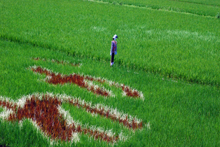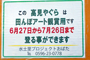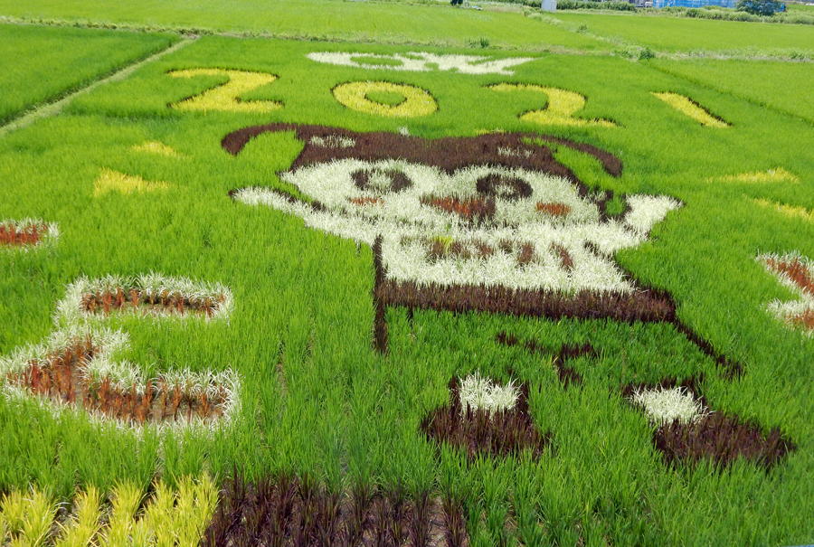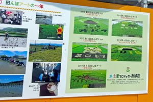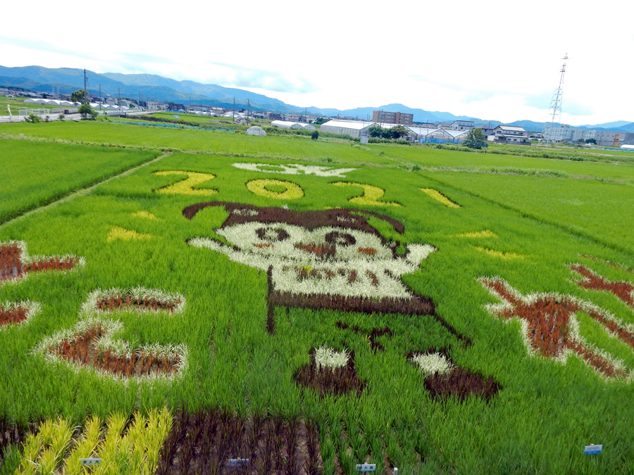 2021年に開催される三重とこわか国体ととこわか大会のマスコットキャラクター「とこまる」が鮮やかに浮かび上がった田んぼアートを見ることが出来た。約1300平方メートルの水田の前の高さ約3メートルの観賞用櫓から撮影したものである。。