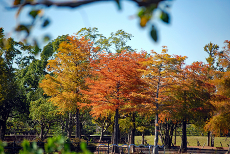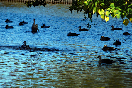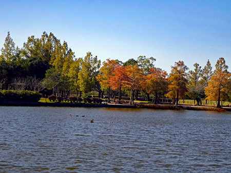 | 歳月の歩みの速さにしばし慄然とする。いたずらに時間ばかりが過ぎ様々な課題が取り残されている昨今の私、、、、2か月ぶりにHPのサークルが再開され出かける道すがら真っ赤になった葉や、黄色がちらちら目についた。引き寄せられるようにその道を通るとサーッカーの練習をしている若人がいていつになく新鮮に映った。池では沢山の亀が甲羅干しをしておりその横で大きな羽を広げている鳥、、、犬を散歩させている老人、木々の手入れをしている作業員の方々、見上げる空には昼のお月様が薄っすら見える。その果てしなく続く秋の風景は確実な時節の動きを感じます。今年もあと2か月余コロナに明け暮れた日々に「さようなら」出来るでしょうか? |