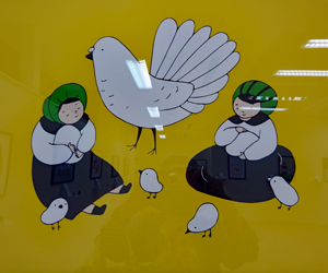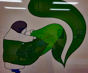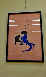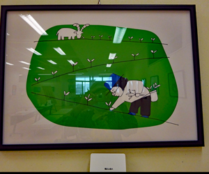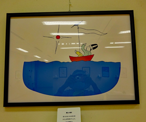 雨の多さにうんざりしているところ水谷様のFBを見せていただき大王まで行くことを決めた。約2週間ぶりの外出である。一歩足を踏み入れると、もうそこはメルヘンの世界、、、作者の大西秀子氏の出迎えを受けしばし雑談、、、絵は「こんな世界もあったのか?」と知識の輪を広げられた感じでとても感動と満足の時間だった。