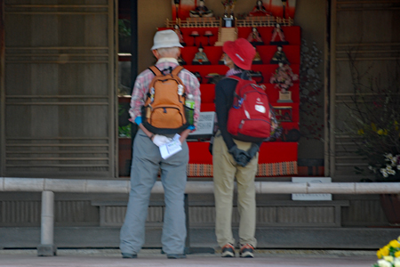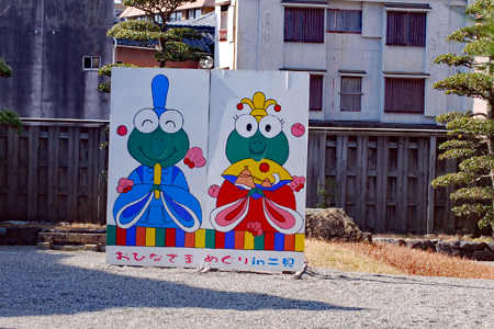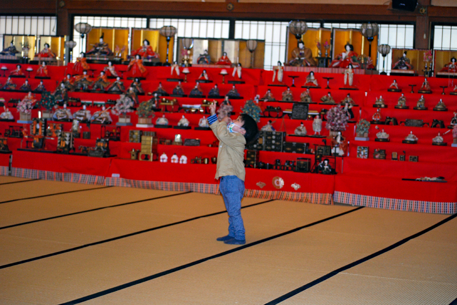 | 「ひなめぐりIN二見」へと車を走らせた。日曜日とあって賓日館は家族ずれや老年カップルが多くみられた。ひなの節句になると必ず思い出すことがある 。 長女が幼い時お座りをした金髪の西洋人形を近所のおじさんからプレゼントされた。その人形が大のお気に入りでどの人形よりも大切に大切にしていた。 人形はどうしてこんなにも子供に愛されるのだろうか?人間に対する興味、自分より小さくもろく不自由な存在がこの世にあることを人形を通して学ぶのであろうか? 自分の兄弟姉妹 、友達、なかま、大切な人として人形を愛するのではないだろうか?そんなことを思うのです。 |