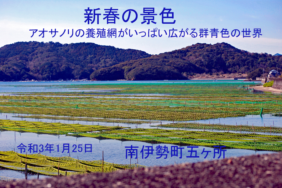 ぽかぽか陽気に誘われ初めての南伊勢町の地に足を踏み入れた。 写真サークルの先輩たちの写真を見せていただいてどうしても訪れたいと思っていた地である。 丁度アオサノリの収穫期に入っていて作業する人、、、その海岸脇の池で緩やかに泳いでいるカモの群れ、、五ヶ所城跡を訪ねて山の方へ向かう途中ミカン農家らしい家の横を通ッた時一人の男性に声をかけられた。 「どこから来たの? 」「みかん食べていき」と5個のミカンを下さり「気を付けて帰りなさいな」と、、、ただ通りすがりの人間にこんなにも優しく温かい人がいるのかと何とも言えぬ幸福感に浸った。 このコロナ禍で身も心も冷え込んでいる中に思い切って訪ねてよかったとつくづく思った半日だった。 (「写真撮らせてね」と言って2〜3枚撮影させていただいたが敢えて後ろ姿だけをUPさせていただきました)