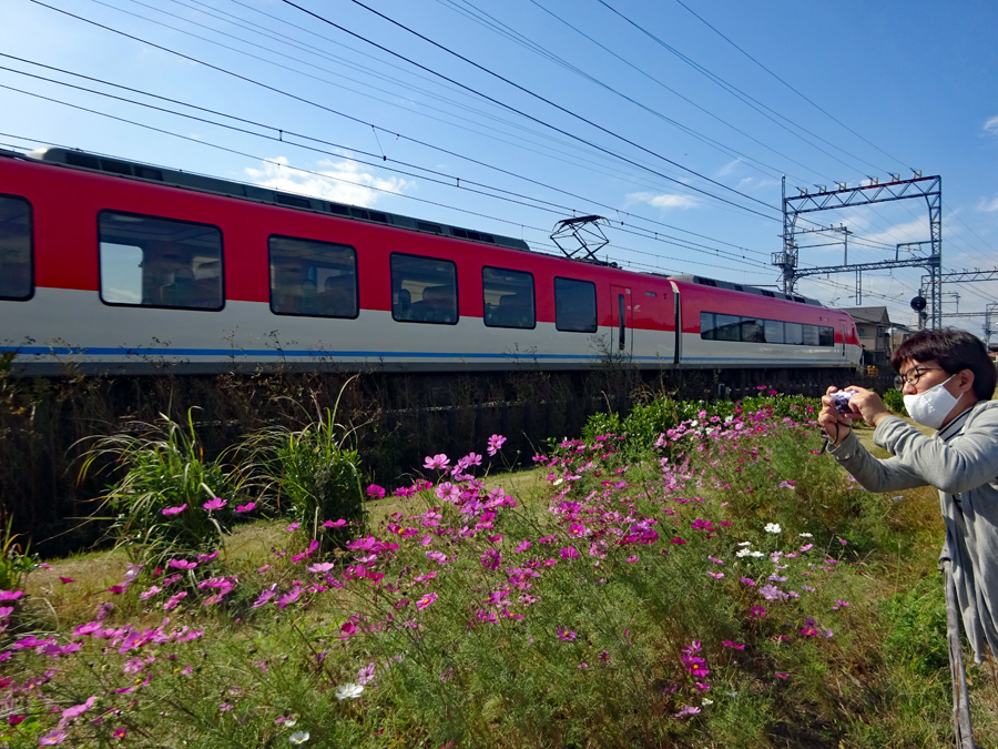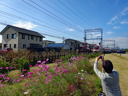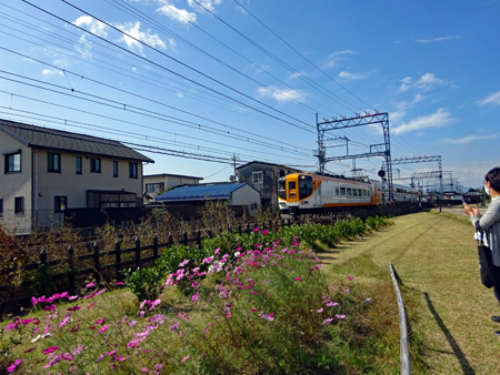 写友の情報で近鉄「火の鳥」が宇治山田へ着くというので通過時間を計算して斎宮駅周辺で登場を待った。沢山のカメラマンが見えていて人気のほどがうかがえた。通過する一瞬を狙う私は連射が不慣れなため失敗に終わりお恥ずかしい写真を見ていただくこととなった。