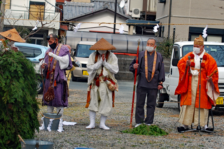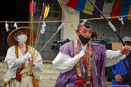 ことで友人を誘って出かけた。例年ならば市長さん初め県議や市議も出席され市民も沢山お参りするそうだが今年は代理人数人で すべてがマスク姿であり異様というより他なしというべきか?それでも古来からの伝統行事を身近に見学できることにまずは 感謝したい。様々なことが身近にありながら未知の世界があまりにも多すぎる自分であることに改めて気付かされた。 そこで必死に守られてきた伝統を少しでも知ることが出来ると心がシンとして癒される。今年は身近な出来事に興味を持ち次 の世代に伝える役目を少しでも果たせたら無上の幸せである。 |