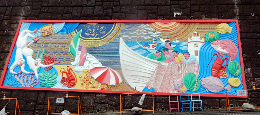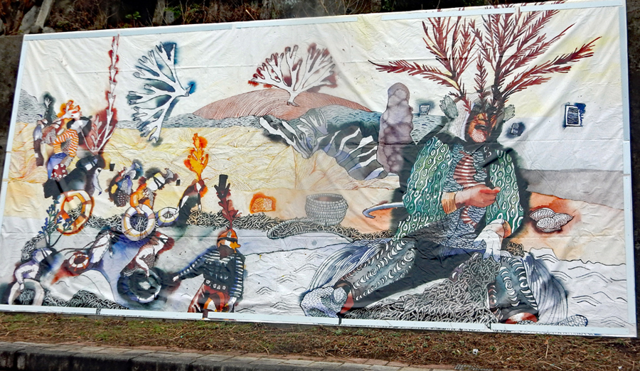 雨が上がったので石鏡へ出かけた。遠い昔長女が大学生の頃アルバイト先の社長様ご家族が民宿へ泊っているとのことで挨拶に伺ったことがある。多分それ以来だと思う。夜だったので周りの景色は覚えていないが細い坂道を下りて言った記憶がある。小1時間いたが漁港ではたった一人の男性に出っただけである。風がきつく海鳥がたむろしているのが見えた。周辺の「海アートプロジェクトの一環として設置された2作品を見せていただいた。インスタレーション作品と言われるそうだがどちらもカラフルで芸術的、次回は屋内展示品をぜひ見たいと思った。