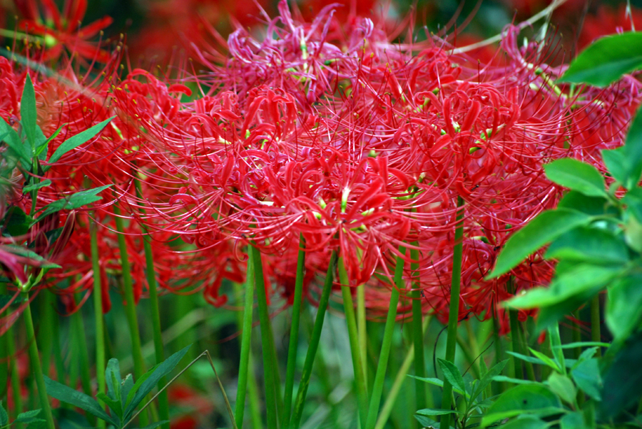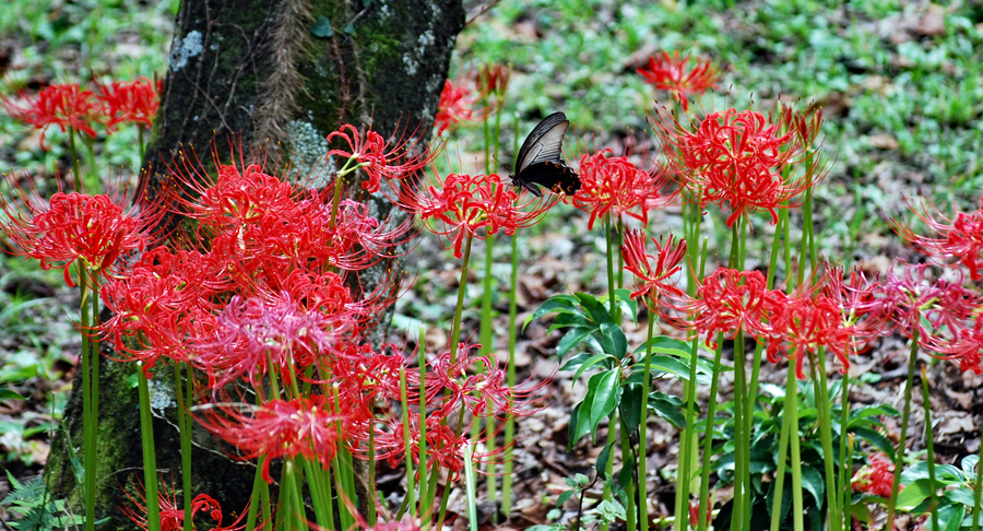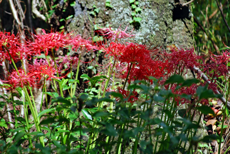 今年の彼岸花の見納めに寸暇を利用して五十鈴公園まで足を延ばした。池には亀が泳いでおり川では白鷺が(親子と見えた)遊んでいて短い時間ながら十分癒された時間でした。有名な彼岸花の俳句を一句 ”曼殊沙華抱くほど採れど母恋し” ”中村 汀女”