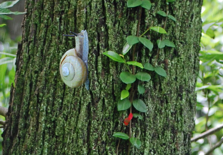 「22日」徴古館は早くも初夏の陽気です。紫陽花も咲き始めました。カメラの友人の薦めで蝸牛を探しに出かけました。やはり上天気ではなかなか見つからないようです。