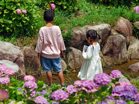 | 買い物があってお昼から「蘇民」を訪ねた。ロマンの森の花しょうぶは見ごろを迎えていた。土曜日とあって家族ずれが目立った。翌6日津の友人の誘いで「かざはやの里」を訪ねた。アジサイ祭りが始まっており白、紫、ピンク等々広大な斜面を埋め尽くすように咲いていた。 とりわけ私は白色が好き、、、白は紫やピンクに比べて満開は遅いらしい。私は萌黄色の今が大好きである。今年の梅雨は例年より早く天然の雨のほかに心の山野にも激しく降り注ぐ雨がある。悲愁、悔恨、憤怒に彩られたもので今年はコロナという暴風雨が加わり悩みは多 い。願わくば雨の後に大いなる虹の花束を投げかけてほしいものだ。 |