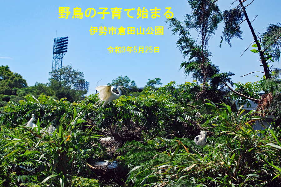 | 赤ちゃん誕生(白鷺、アオサギ、鵜)伊勢倉田山公園 令和3年5月25日 この前は巣作り真っ最中だった鷺や鵜に赤ちゃんが誕生しており今回は子育て真っ最中というところでしょうか?卵を温めていたり巣作りに木片を加えていたりする鳥もいてその場所へ近づくと鳴き声がとてもけたたましく賑やかだ。すぐそばの高校では国体が近づいているせいかこれまたグランドも若い熱気であふれていた。早くコロナが治まって心おきなく国体が開催できますようにそして鳥たちの子供や卵もまた外敵に襲われることなくすくすく育ちますよう祈りたい気持ちでいっぱいになった |