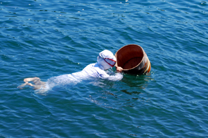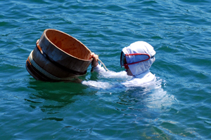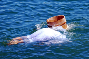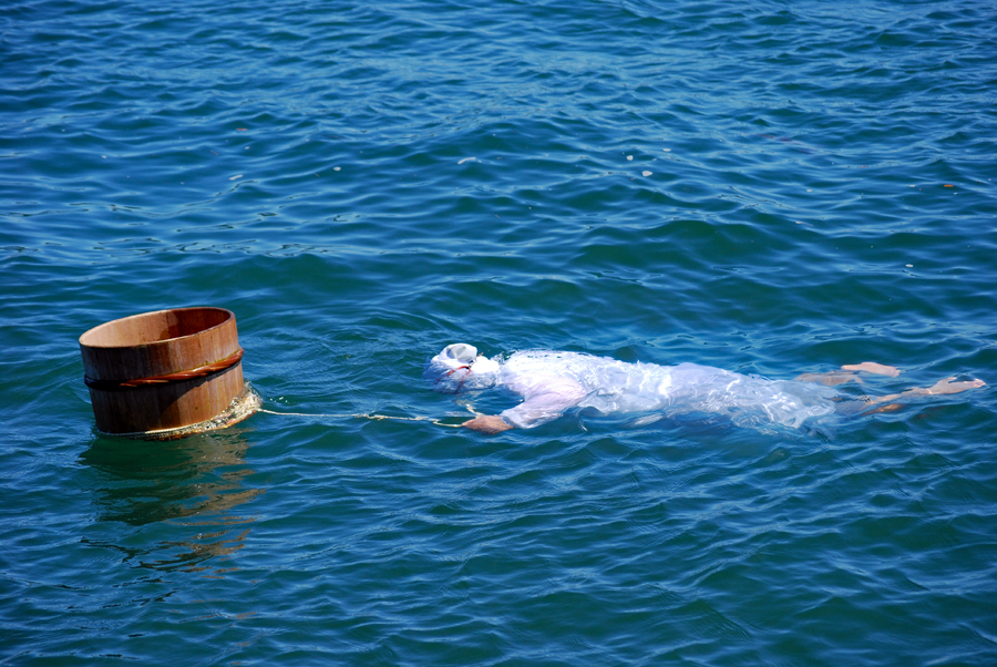★ミキモト真珠島が開島70周年を記念して「鳥羽パノラマ幻燈館」が企画され鳥羽市民に無料招待券が広報にて配布された。もう何十年も訪ねたことがないという写友数人を誘って出かけた。最初に海女の実演を見学、今では昔ながらの白い磯着姿の海女さんに出会うのは珍しいと懸命にシャツターを切った。昼食後目的のパノラマ幻燈館へ、、、明治大正昭和へと移りゆく街の姿にただ驚きと懐かしさでいっぱいになった、とともに自らの来し方を偲ぶに大いに意義のある時間となった。今は亡き夫から子供の頃(真珠島が相島と呼ばれていた)頭に服を括り付けて岸壁から島まで泳いで 遊んだことなど聞かせてもらったことが懐かしく思いされた。折しもオリンピック開催の真っ最中で競泳の女子「大橋悠依選手」が金メダを獲得したとのニュース が流れた。いろいろ賛否両論で沸いた大会ではあるがもう始まってしまったのだ。いまはただ「頑張れにっぽん」と叫び応援したい。 |