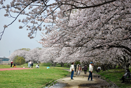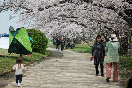 此の日桜巡りと決め込んで阿児町の創造の森〜宮川堤へと移動した。まさに桜満開の風情家族ずれ、友達ずれ、老人のカップルと様様外の空気を満喫している様子だった。