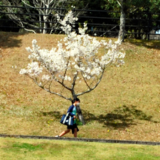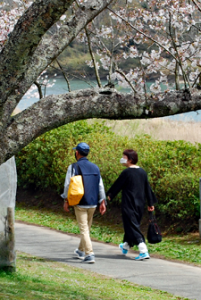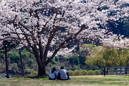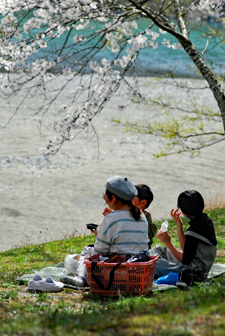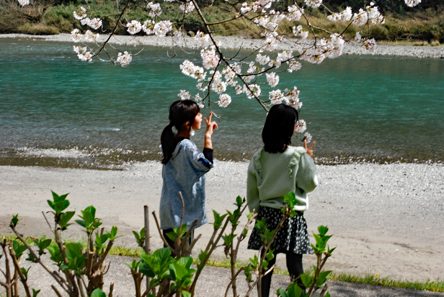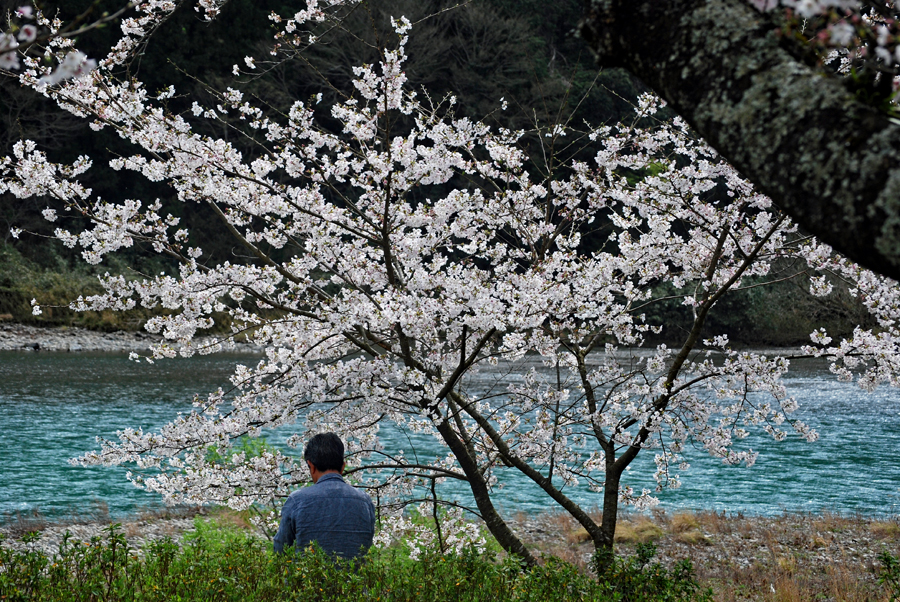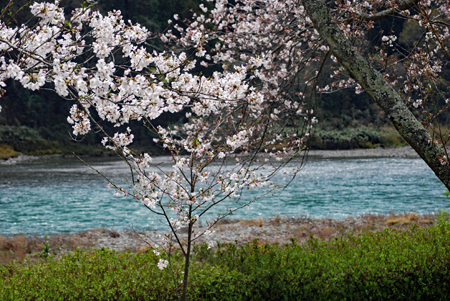 田丸城址の帰り「宮リバー」へ寄る。春休のせいか子供が多い。エメラルド色の川面にピンクの桜が映えて美しい。時は人を待たない。花のつぼみに心をときめかしたのもつかの間あっという間の満開で、すでに早咲きの桜は青葉に覆われていた。花ある時花あるところで花を慈しみ人生をいつくしむことに幸福を感じるこの頃の私です。