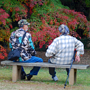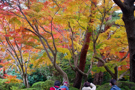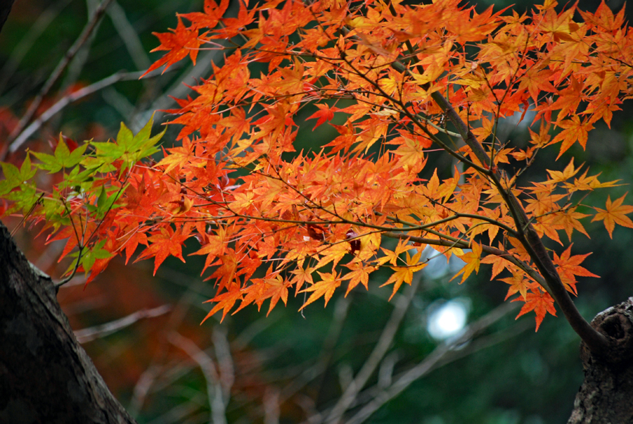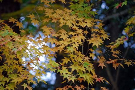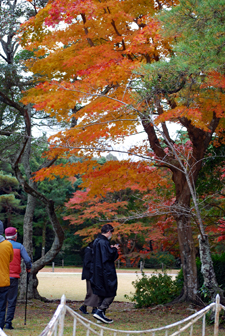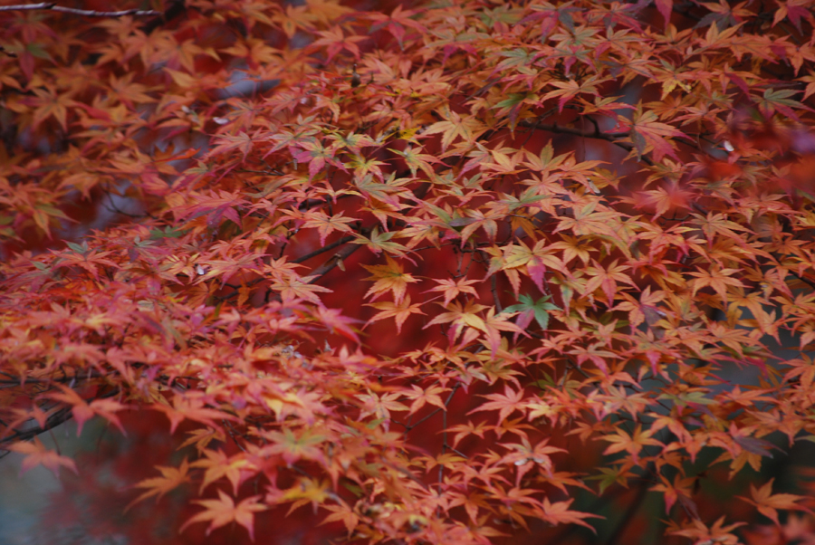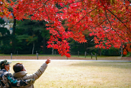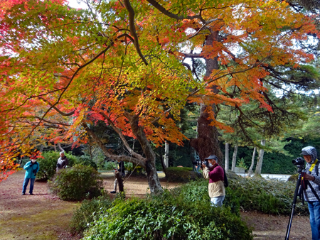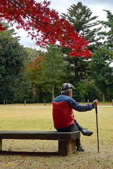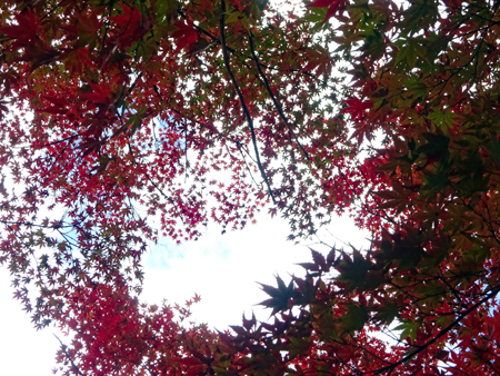 写真サークル「フォトアートいせ」の会はしばらく休止していた撮影会を2年ぶりに再開した。会員約20名がAM10時に現地に集合し、各人思い思いにシャターを切った。時には師のアドバイスをいただいたりモデルになったりして楽しくも愉快な時間を過ごした。それにしても天然の贈り物である紅葉の艶(えん)とは、、、どれもみな朱の色、残る緑とのモザイク模様のぐあい、黄の混じり方、見事に異なる枯葉になる直前に輝き出る葉の不思議を堪能する。楽しい時間は瞬く間に過ぎ予定の半日を過ごして帰路についた。帰り道みぞれらしい雨に降られた。 冬は足早である。 |