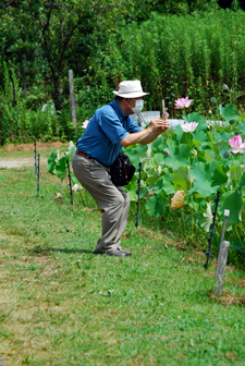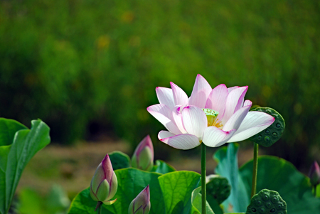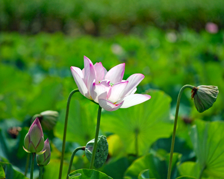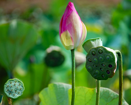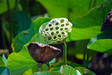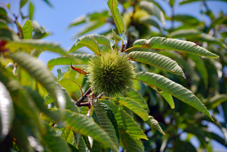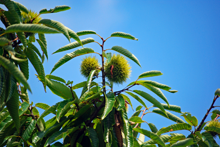 | 買い物に蘇民へ行くと裏のピンクがふっと目に留まった。「まだ咲いている」そう思ひつつカメラを手にして近付いていくとまだまだハスが満開に咲き誇っていた。隣ではもう茶色く茎を異様に伸ばしている田があって花と同居していた。こんな景色も又いいかな?と思いつつ道路のわきを見上げると早くも栗が実をつけ始めていた |