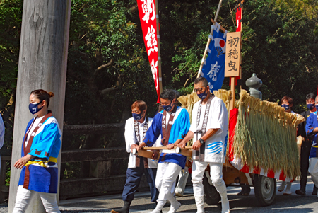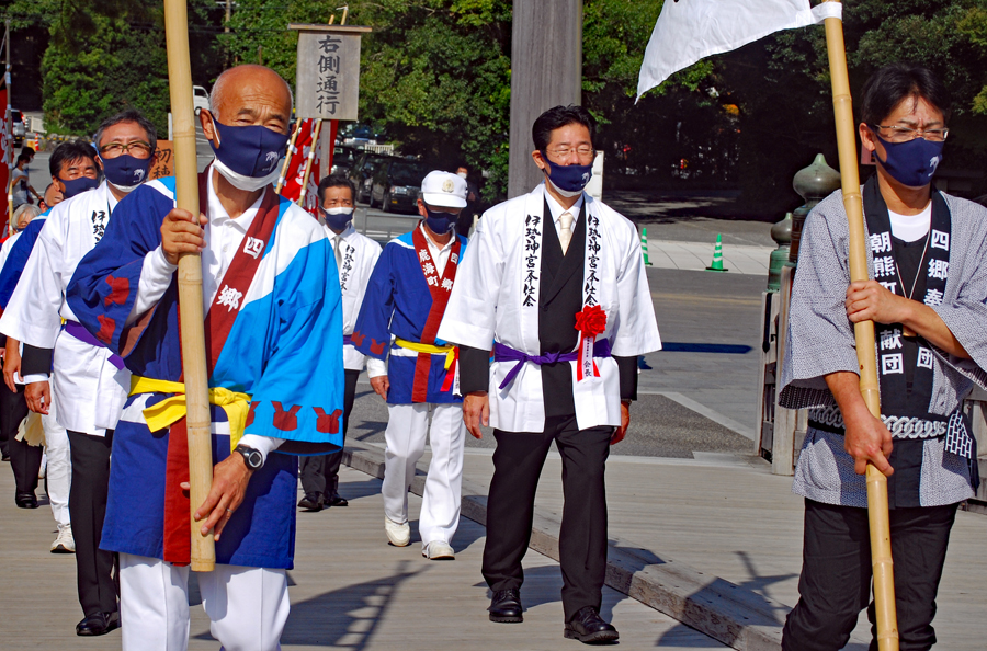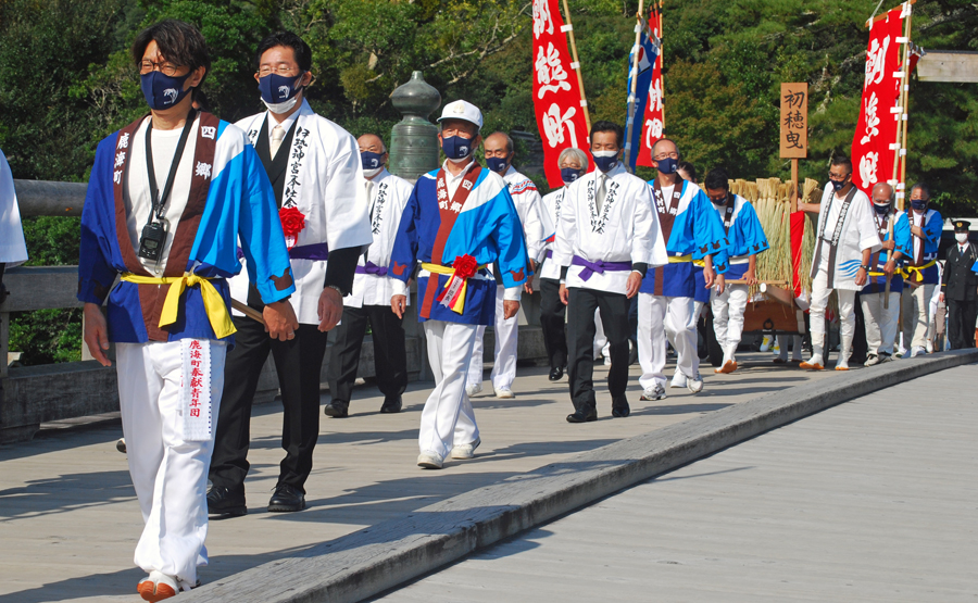昨年に引き続きコロナ禍のため初穂の奉納だけとなった内宮へ朝から出かけた。明日から又雨だという天気予報なので欲張ってあちこち移動することとした。両宮とも沢山の人出だった。
