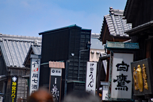 のぼり旗の展示 伊勢内宮前おかげ横丁「大黒ホール」