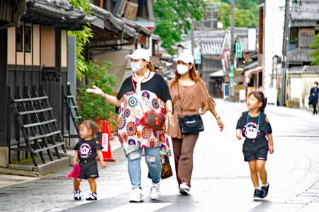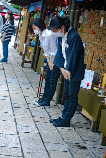 おかげ横丁では「風鈴まつり」が始まっていた。AM10時大きな太鼓の音とともに各店員さんが内宮へ向かって礼拝する姿が見られた。朝の空気が特別美味しく感じられ身の引き締まる思いであった。ツバメが数羽飛び交い今日の一日が始まろうとしている。コロナ禍の中どんな日になるであろうか?ちらほら観光客が出始めていた。こんな人影のないおはらい町やおかげ横丁の姿をカメラにおさめておきたいと思った。