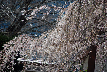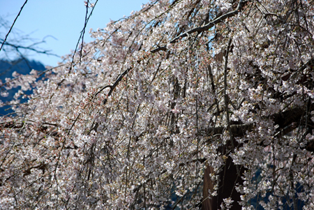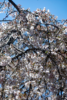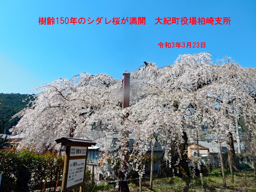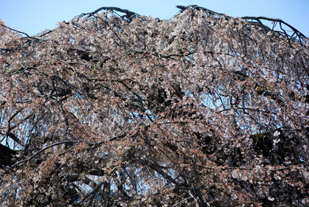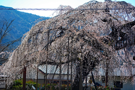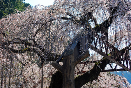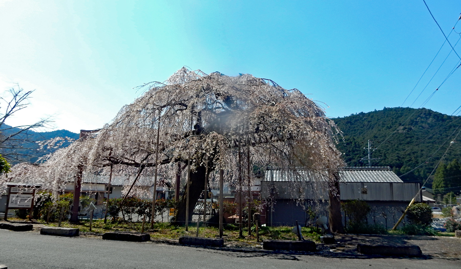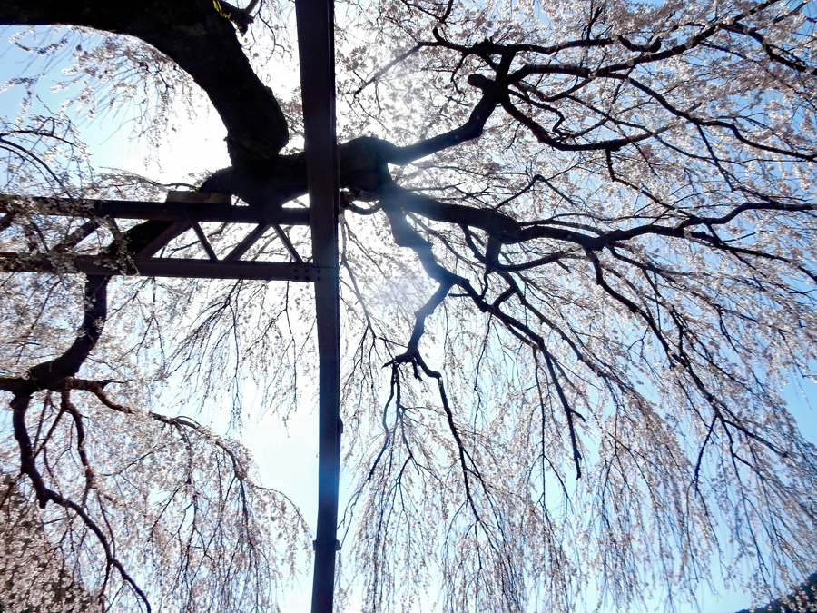 10日に開花したという新聞記事を読んでからもう1週間は立ってしまった。昨年初めて当地を訪ねただけで道を覚えているか不安だったが何とかたどり着いた。やや遅かった感があったが高さ11メートルの古木から大きく広がって垂れている姿はやはり雄大で風格があった。昨年からコロナに日本中が振り回されているこんな姿に接すると何故か明日へ向かう勇気が出てくる。桜様ありがとう。