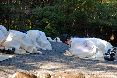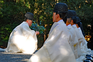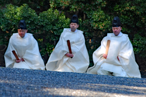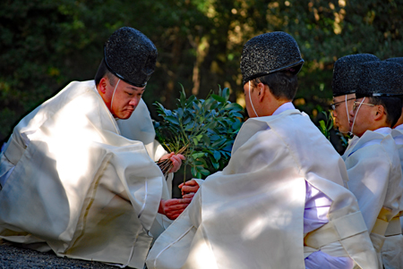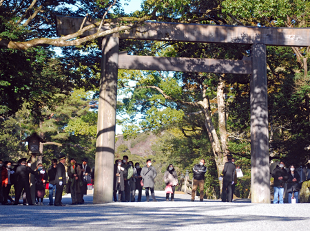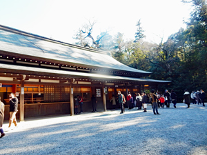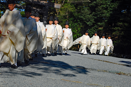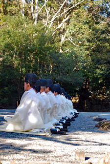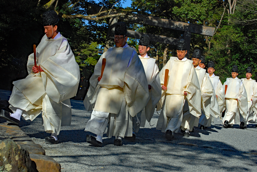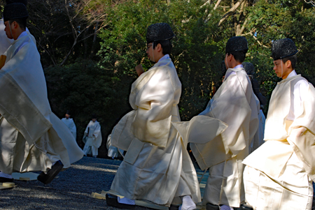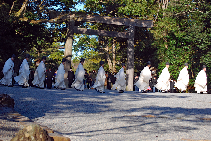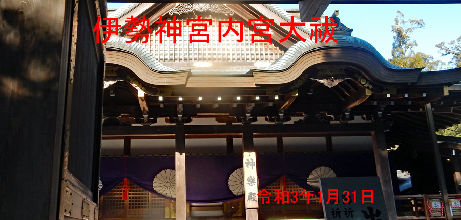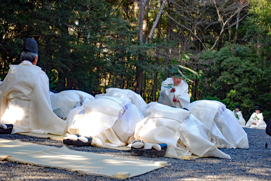 内宮の「大祓」は2月の建国祭に備えて宮司はじめ神職全員の清めの儀式、、、風が吹き少々寒いが粛々と静かに営まれた。明日からもう2月辺りでは春が聞こえている。