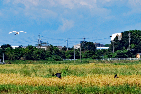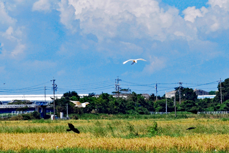 国道42号線で信号待ちしていると白鷺が沢山いるのが見え、急いでシャッターを切った。