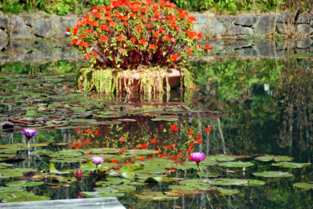 | 秋咲きのバラが見ごろを迎えたという新聞記事を見て出かけることにしたありその時は盛夏だった。今回はナビを頼りに車で出かけた。ここは沢山の花々が一年中楽しめるように植えられておりとても心が癒される自然い っぱいの場所だ。バラは丈高く咲き誇り、睡蓮の紫が池のあちこちから顔を出し、木々の傍らにはつわぶきが群がり咲いていた。葉陰から見える赤い実はナナカマドだろうか? しかしどんな盛んな季節にも花の命は終わるもの、私達人間も又、、、、秋の光が咲かせる花々は皆物静かです。 |