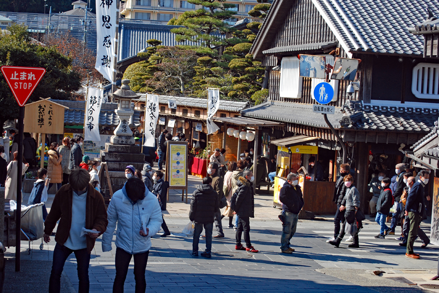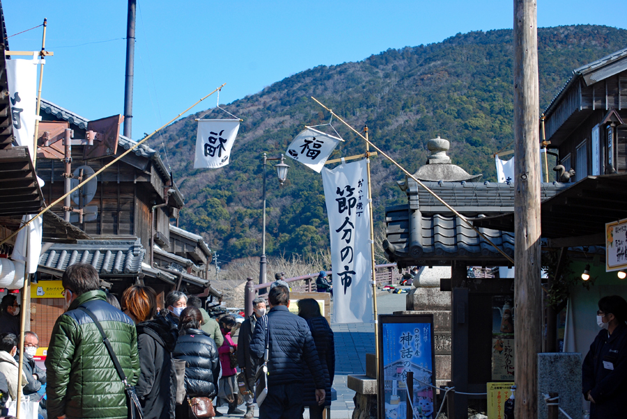 | 1月生まれの私は毎年1月中に外宮・内宮の初詣を欠かしたことがない。外宮は月始めに済ませたが内宮の方はコロナ禍で心が動かないまま時を過ごしてしまった。今日は1月の最終日意を決して出かけた。日曜日とあって思っていたより観光客は多く感じられた。 「節分の市」でいわしを串にさして焼いている店がいち早く目に留まった。昔も今も禍を避け福を求める人々の心は変らないのだと延々と続く習わしを懐かしんだ。冬には遅く春には早いこの季節必ず思い出す節分の行事「あらくさあらくさ、、、 今年の年はかねくさい、、、、いろりを囲んでいわしの匂いを嗅いだ幼い日の思い出、、、花はまた開き鳥は必ず鳴いて人々は笑みを交わすであろう。 |