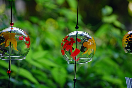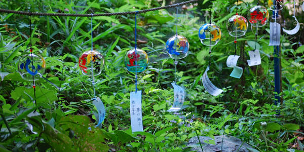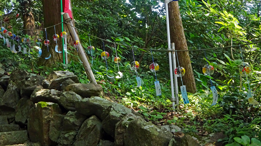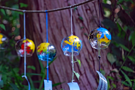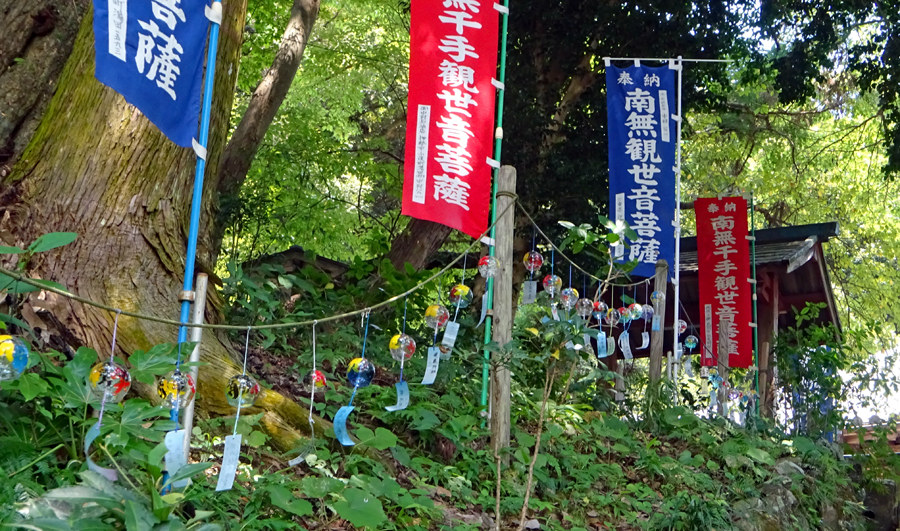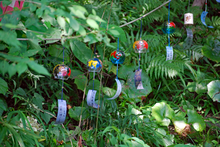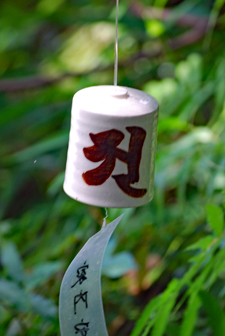 民話の駅「蘇民」の帰り風鈴祭りが開かれているという太江寺へ寄った。せみ時雨が心地よく耳に響き猫君に先導されて石段を上がっていくと様々な願いを込めた風鈴がここも又リーンリーンと涼やかに森の中に響き渡っていた。