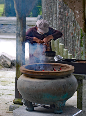 久しく開山忌の日に参った事がない。今年は思い切って出かけ塔婆も上げ少し気持ちが和んた。奥の院で可愛い子供の声が聞こえてきた。「いかがですか。茶のこ餅美味しいですよ」私はついつられて近寄り「君の声がとっても元気だから買うんだよ、頑張って、、」と声をかけて少しばかりのチップを渡しその場を離れた。茶店の方から父親らしき人が行き来しているのが見えた。少しほっとした。