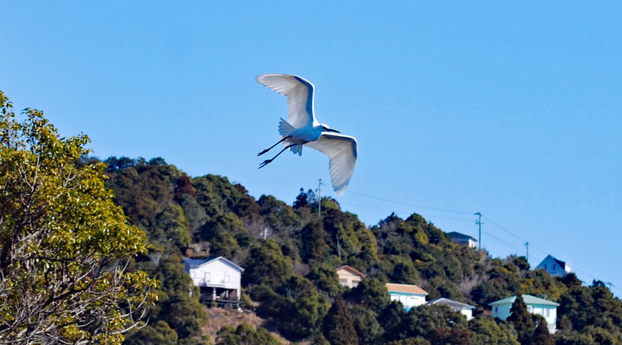 昨年初冬、種付けをする景色を撮影に行ったその場所を再び訪ねた。少しづつ春の足音が聞こえるような気がして思いは外へ向かう。 岸壁を歩いていると一組の釣り人に出会った。「何が釣れるんですか?」と私、、、「何も釣れないのさ。糸を垂れているだけで気 持ちが落ち着くのよ。普段は短気なのにね、、、」と彼ら、、しばし世間話などで時間をつぶした。自然の中に身を置くと私達人間 は、何か活気が体に満ちてくるのを感じる。青い空、降り注ぐ陽光、動く雲、流れる風、、、小さな流れや池に冬鳥の遊ぶのを見る こともある。私達は自然に抱かれて心を育て、命をつなぎ人間らしい人間になっていくのでしょうね。 大空を飛ぶ鳥の姿を求めてしばし心を遊ばせているとコロナ禍のことも忘れてとてつもなく尊い時間を持てた幸せに浸った半日だった。 |
