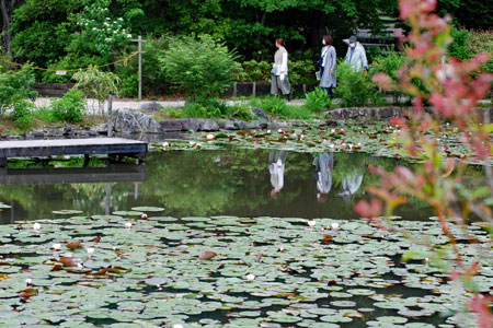 松坂の続きにレッドヒーサーの森まで足を延ばした。ローズガーデンは1500株のバラが見頃を迎えていた。睡蓮の池では早くも花が咲き始め絵画のような世界を楽しんだ。5月ははげしくやさしい月だ。降る雨の色まで緑色をしているような緑の爆発する季節だ。「薔薇と水連」