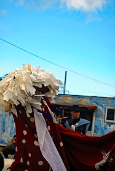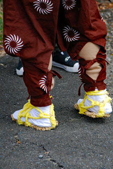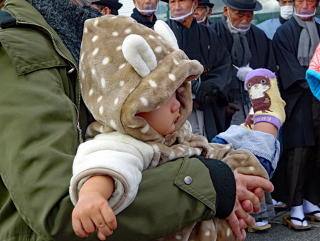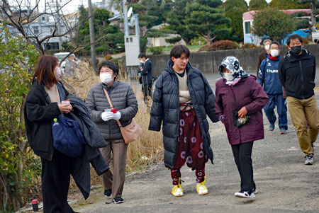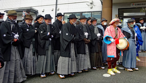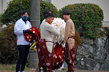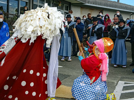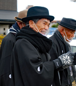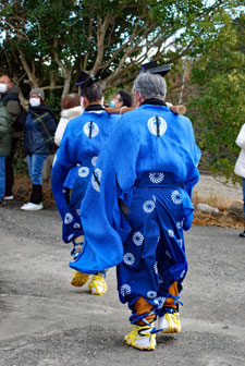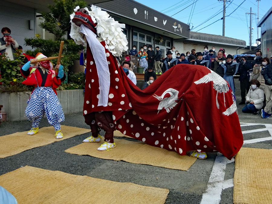 | 2年振りに行われた獅子舞は実家の甥っ子3人が行事に関わっていた。一人は町内会長という重責を担いあとの二人は山高帽に裃姿で年寄りの仲間に参加していた。思いは自然と自分の幼いころの風景にタイムスリップする。家長の祖父をはじめ両親、兄姉妹、家族全員がよそゆき姿で家の正面に正座して獅子舞を見守った。何処にいてもその時間には必ず家に帰っていなければならなかったのでたまに遅刻すると大変なお叱りを受けたものだった。3人の親戚がこの役につくことはとっても名誉なことであり泉下に眠るご先祖様方のおもいはいかばかりかと思いながら帰途についた。今日は朝からいつもの道ではなくパール道路から国崎へ降りて相差へ入った。 |