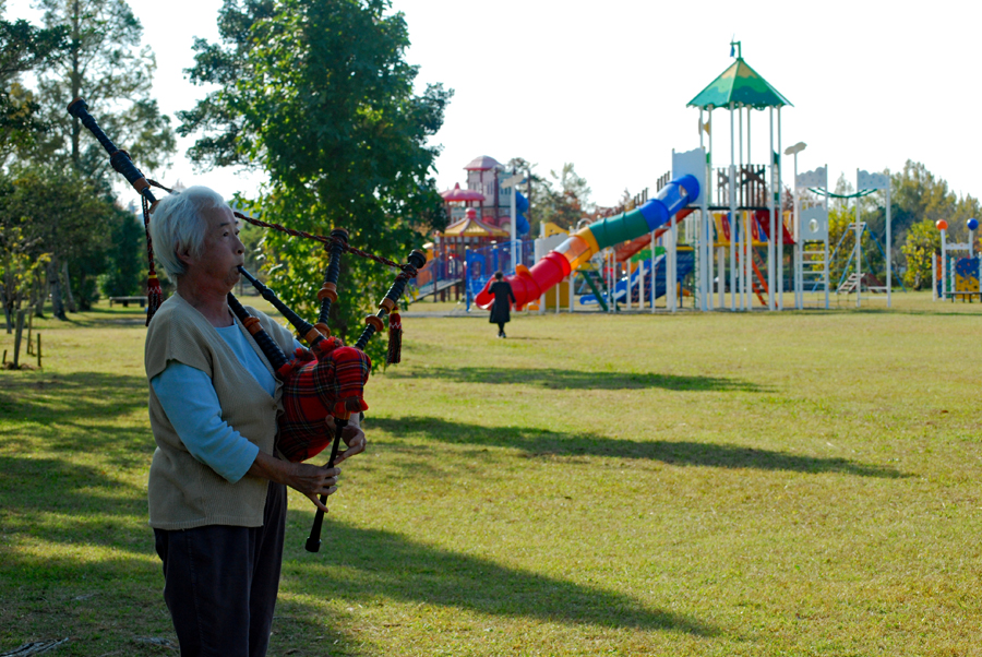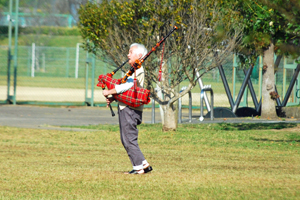 | 好天が続くとたまらなく外へ出たくなる。五十鈴公園では運よく亀と鴨を撮影できた。気分良く車を走らせていると二見鳥羽ラインから山麓公園の黄赤色の景色が目に飛び込んできた。きれいな音色とともに、、、、今まで生の演奏を聴くことが少なかった私は珍しい楽器を弾いている人に出会った。ハグパイプ(わたしははじめてみた)パンフレットの写真の通りですがその日の為に音色の響き具合を調査しているところだった。懐かしい音楽を聴きながら撮影の許可を頂いた。「人も写真も一瞬の出会い」が大切だということをあらためて知った。人間の願いや悲しみや喜びや叫びなどありとあらゆるものをまとめたらバグタイプの音色になるのではないかとかってに思っている。興味のある方はぜひ朝熊山麓公園へお運びください。一緒に生の演奏を聴きましょ |
