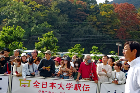 | 何年かぶりで終着点で待つことにした。選手の家族らしき中に混じってその時を待った。周りはスマホばかりの撮影でカメラがうまく向けられない。3着までは待って駐車場迄帰る道すがら人のすいている場所で見つけてはパチリ、、、ラストランナー迄大きな声で「よう頑張った‼」の声援と拍手の人、人、人、その中を力を振り絞り駆け抜ける学徒たちに敬意と感動を与えられた。その渾身の力をぶつけて走る全選手に乾杯‼ |