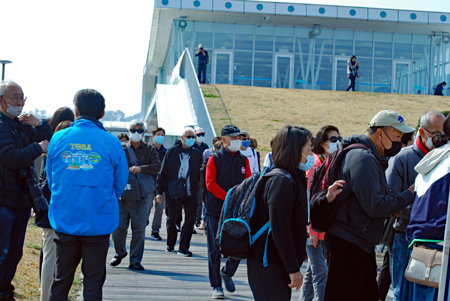 | コロナ禍の中で姿を消していた外国客船が3年振りにその優雅な姿を見せた。AM10時頃行くと丁度旅行客の下船が始まったところだった。「welucome to ise shima」大きな声で手を振る女性の後ろからパチリパチリ、、、、その後志摩の撮影会の集合場所へ向かった。桜の便りが語られ始めると心の中で起き上がるものがすっくりと背を延ばす。さあ、何かしなければ、過去を振り切って前進しなければならないと、その中で旗が振られる。年ごとに花や人を恋うる気持ちが強まってそれは希望に会う心地がするのです。そんな時間を度々与えて下さっている志摩の皆様に心より感謝申し上げます。 |