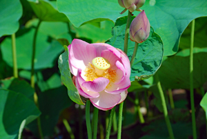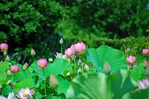 | 早朝にこの花を見たことがない。今日は恒例の日赤の受診日で1時間早く家を出て「蘇民」へ寄った。朝日が眩しく照り輝きいつもとは少し違う景色が見られた。花影が葉に映り込みトンボが飛び交う、、、、蓮花は泥水の中から美しい花を咲かせるその姿を純粋性の象徴と言われているとか、、、。「天災は忘れたころにやってくる」という警句は、寺田虎彦氏の言葉だといわれているが最近では「天災は忘れないのにやってくる」と改めねばならないのでは?、、、 未だ梅雨が明けていないこの列島、日日流れてくるTVの映像にむなしさとやるせなさを噛みしめているこの頃です。災害に遭われた多くの皆様に心よりお見舞い申し上げます。 |