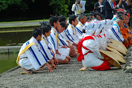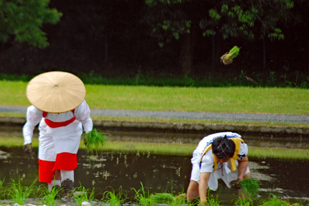 神嘗祭初め諸祭典にお供えする御料米の御田植式が伊勢神宮の御料田で古式ゆかしく行われた。