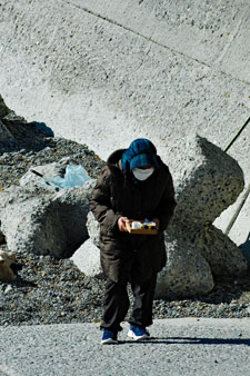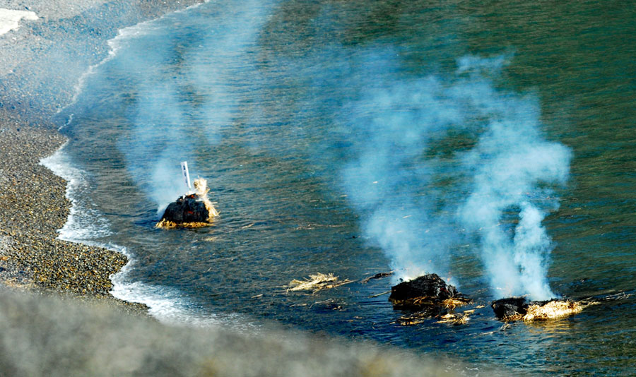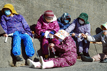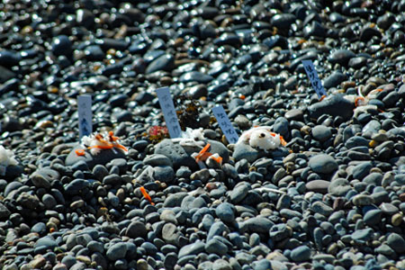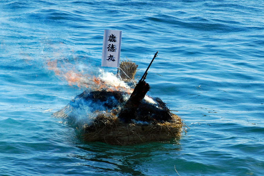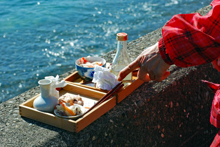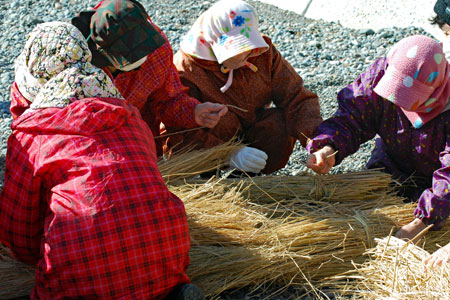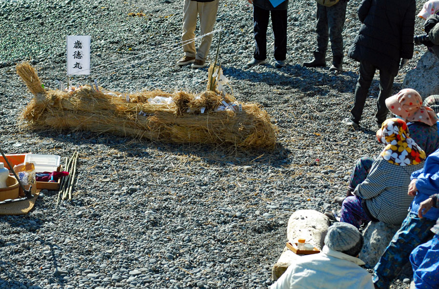 | 江戸時代から続く伝統行事で「国の無形民俗文化財」に指定されている。地元の海女をはじめ各家から必ず一人は参加して大漁と安全を又悪霊を追い払うとして木の膳に魔除けの言葉を書いた「ツメの札」、赤飯、なます、酒などを入れ波打ち際で手を合わし祈るという正月行事の一つだそうです。ちなみに「ノット」とは「祝詞」がなまったと伝えられている(毎日新聞より)。今朝私は時間より早く現地入りをして鎧岬の灯台まで足を延ばした。長く近くに住みながら初めての経験ばかりであり特に今日は中学時代の同窓生や後輩に会い卒業以来初めて出会えたことがセピア色の思い出をよみがえらせ彼女たちの姿から豊かな自然とともに自然な姿で長く生きてきているように思えてとても幸福感に包まれた一日であった。 |