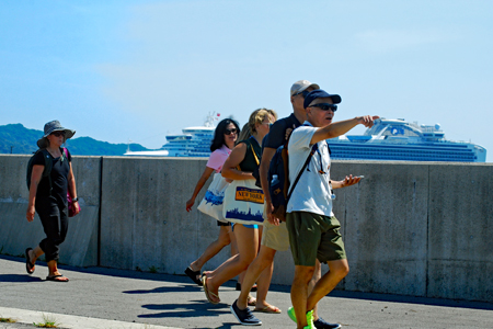AM9時過ぎ和具へ向かう前に鳥羽湾を覗いてみると久々の豪華客船が見えて乗船客が下船を始めたところだった。ほとんどが外国の方ばかりのように見えた。