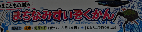 ★「海の生き物作り」作品の展示が昨日から始まった。作品は7月から各小学校の子供教室で作られたようですが年々その作品群は精密で高度になり見るものに勇気と感動を与えてくれる。携わった多くの関係者各位に敬意と感謝を申し上げたいと思います。
