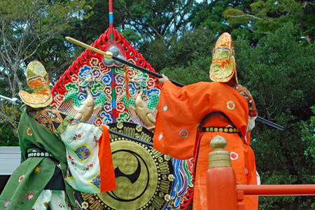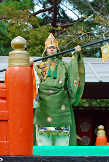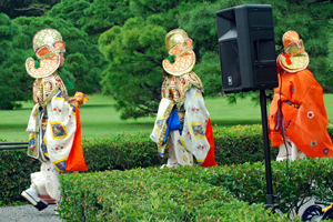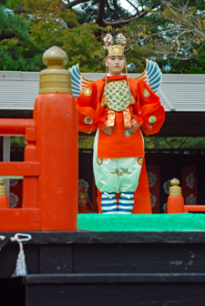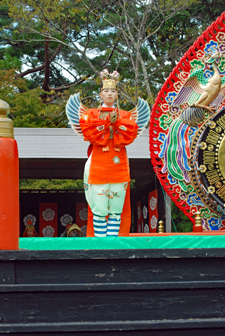 | 秋の神楽祭の真ん中の祝日、昨日とは打って変わって上天気で秋の空が今日又格別美しい。14年振りに奉納されるという「貴徳」は勇壮な北方の王の舞とかで衣装もさることながらその美しさに魅了させられた。帰りおかげ横丁の縁起の良い招き猫祭りを眺めながら福を充分頂いた気分になって帰路についた。 |