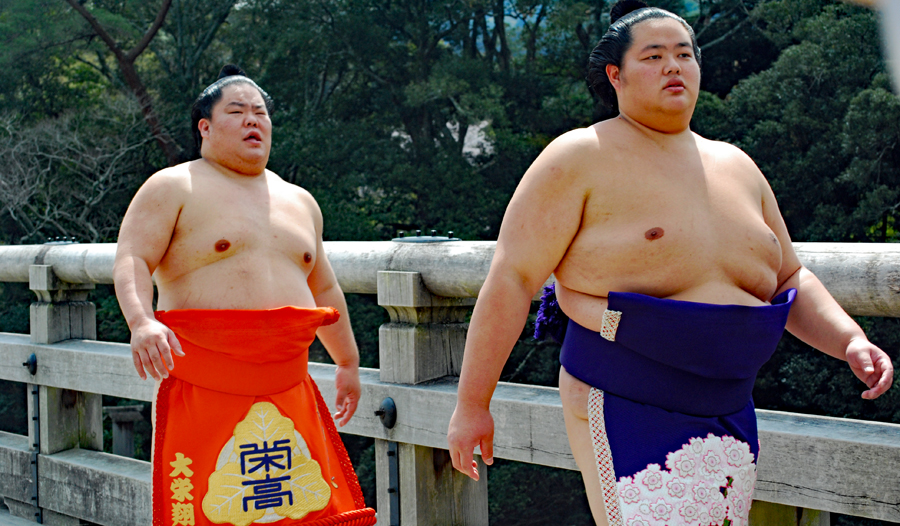 | 今回初めて生のお相撲さんにお目にかかれて感激きでした。こんな大きな人間もいるのかと正直思いました。おかげ横丁は以前のにぎあいを見せてとても沢山の人でにぎあっていました |
