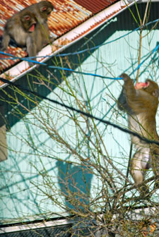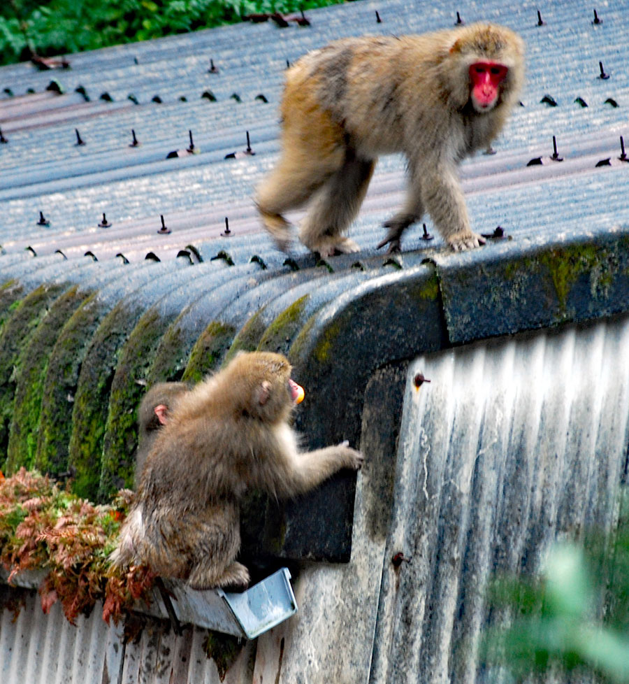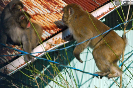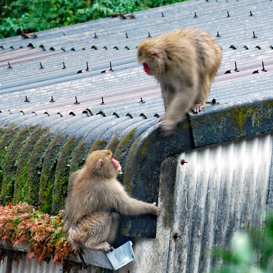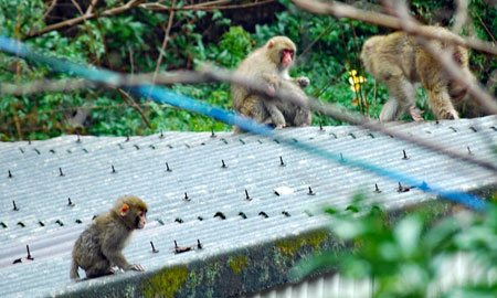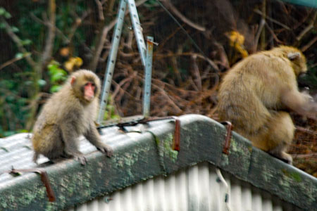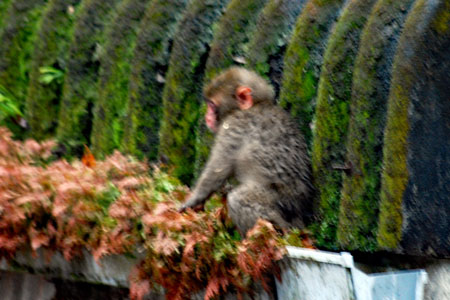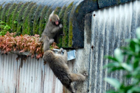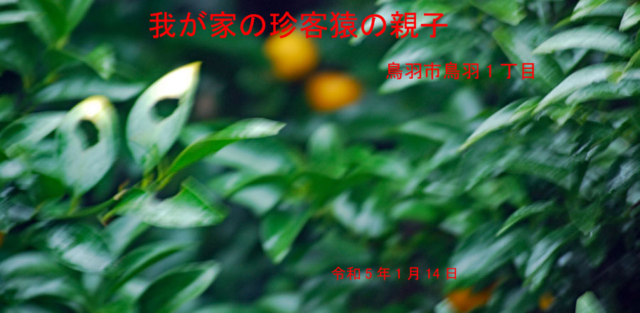 雨の中を親子の猿軍団がまたもや我が家のやまとたちばなの木を揺らしている。「雨にも負けず、風にも負けず、、、、」か?