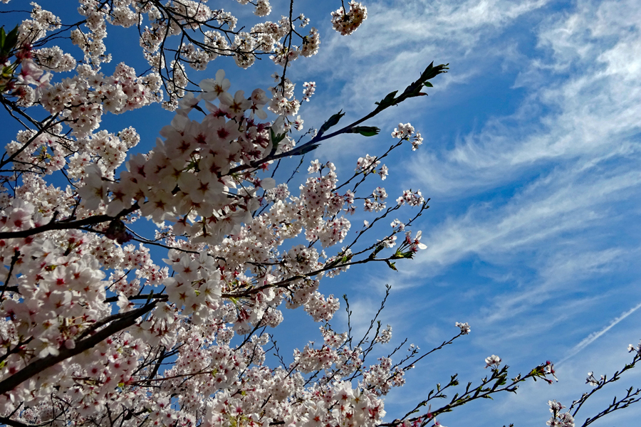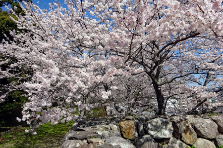 美容院の予約時間より1時間早く家を出て城山公園に上がった。海から来る潮風が頬に優しい。桜はほぼ満開であった。此処は私の高校時代の校舎跡地で寮も近くにあったため懐かしさもひとしおである。美容院の帰り市民の森へも足を延ばした。満面の花と青い空、葉間に蓄えられた蕾は花になる前の火のようなエネルギーを内にこめて力強く感じられた。これからが花の季節まだまだたくさんの花に出会いたいと思う。